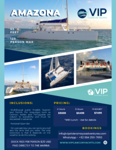 AMAZONA CATAMARAN – PRIVATE CATAMARAN OFFERED BY VIP RIVIEARA MAYA ADVENTURES FOR PRIVATE CATAMARAN RENTALS