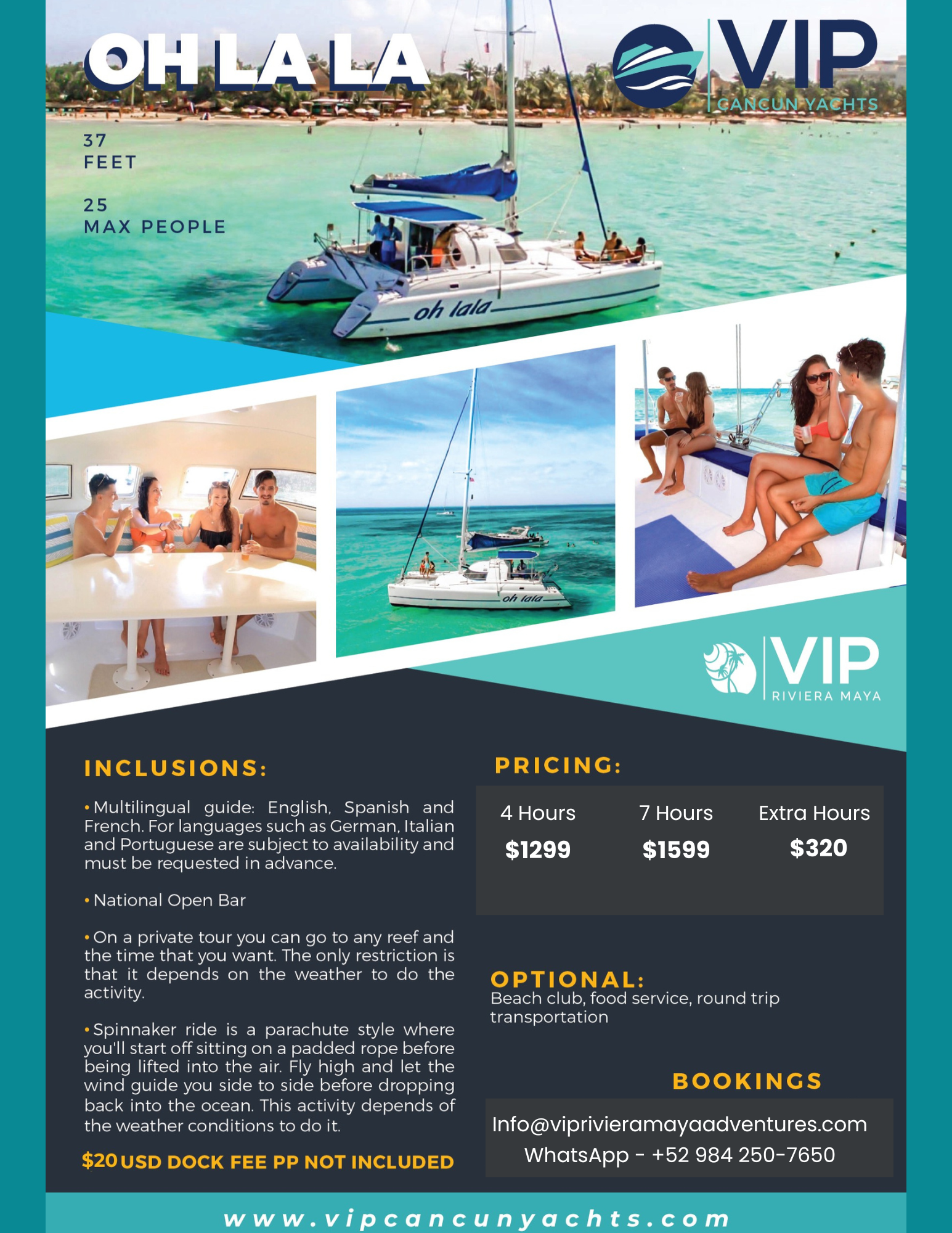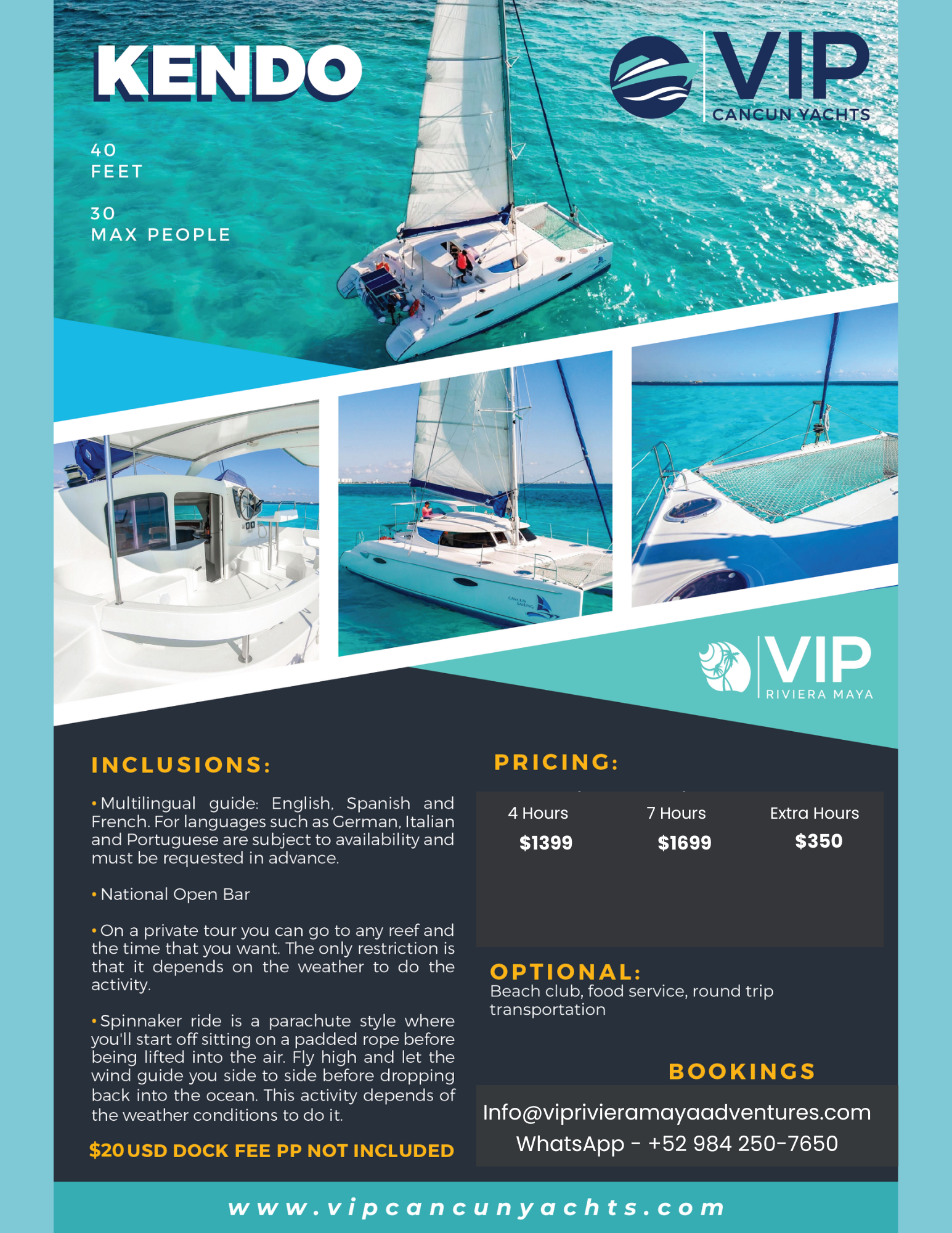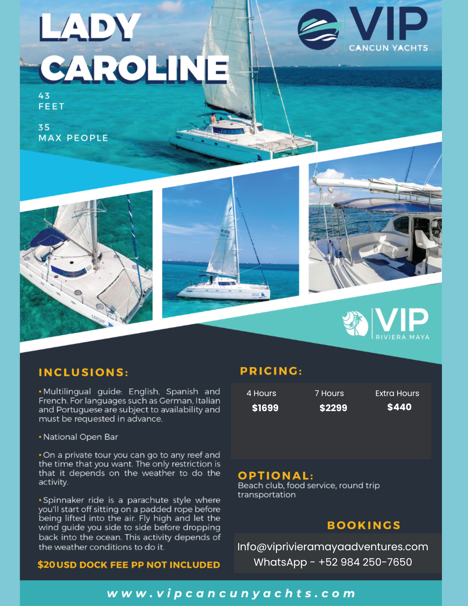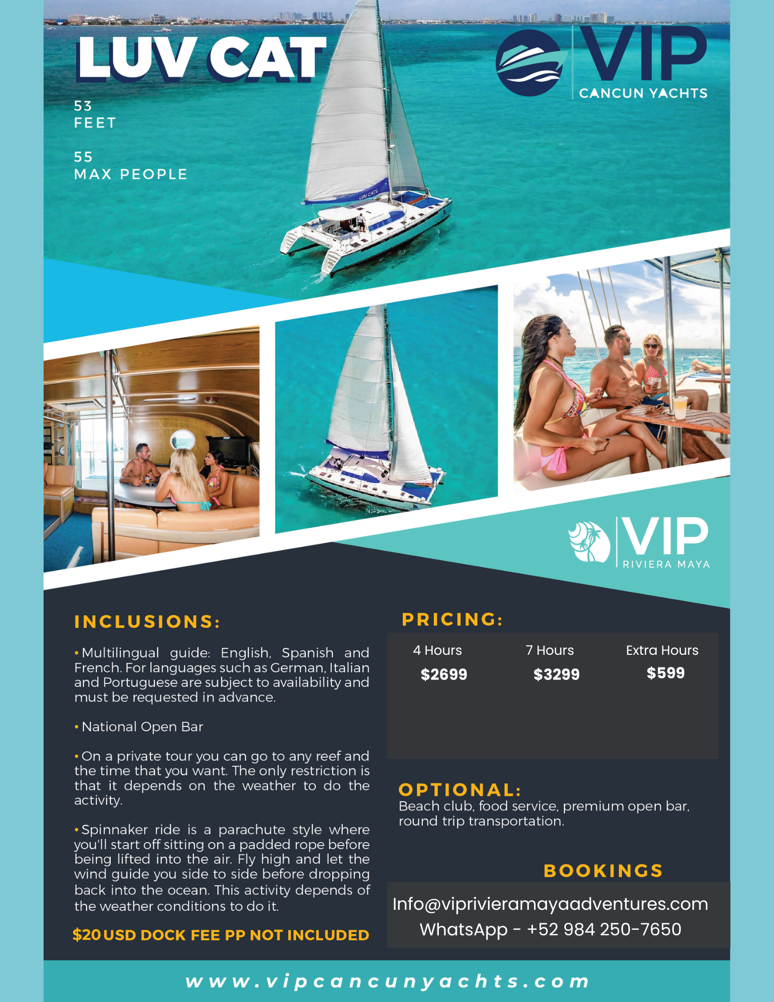 VIP Cancun Yachts operates out of Cancun, Puerto Aventuras, Maroma, and Playa del Carmen and is a sister company of VIP Riviera Maya and VIP Cancun Transportation. VIP Riviera Maya is a travel company that takes vacation tours and excursions to an entirely new level. We’re safe and reliable, but what we do best is customer service! Plus, we customize your tour to just what your group wants. We know that vacation time is valuable and there’s no time to waste. And our VIP Cancun Transportation offers safe, reliable, and comfortable airport transfers and other excursions with top-notch customer service, fully insured vehicles and the friendliest bi-lingual drivers with added service options when the need to customize your transportation is necessary.