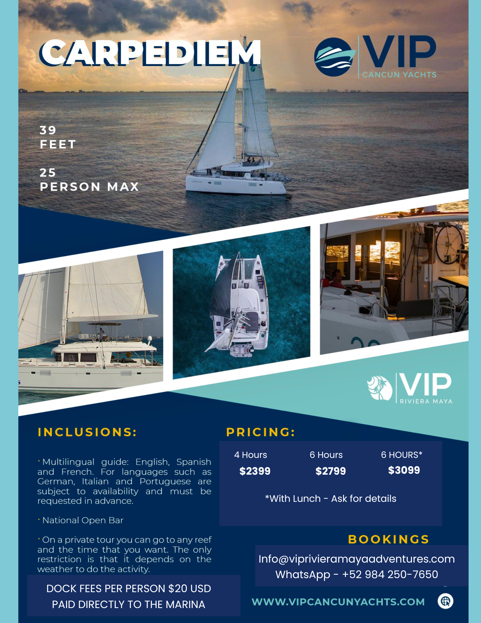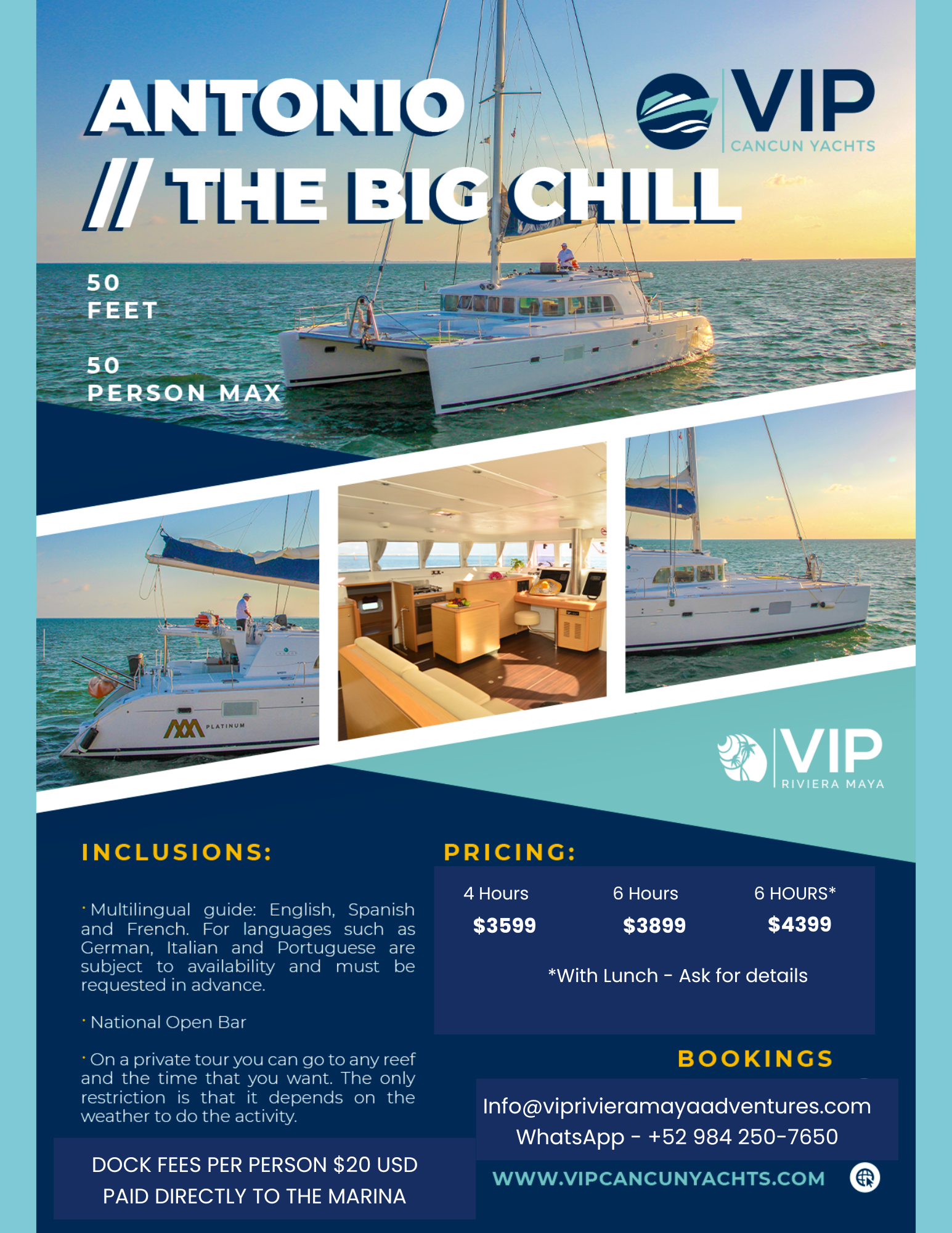 When possible, we’ll send a member of our team on board with you to make sure your experience is a memorable one, if not the most memorable of your entire vacation! At VIP Cancun Yachts we don’t throw around the word “VIP” lightly. You are treated like a VIP from the moment you meet us to the moment we part ways. We are at your service.