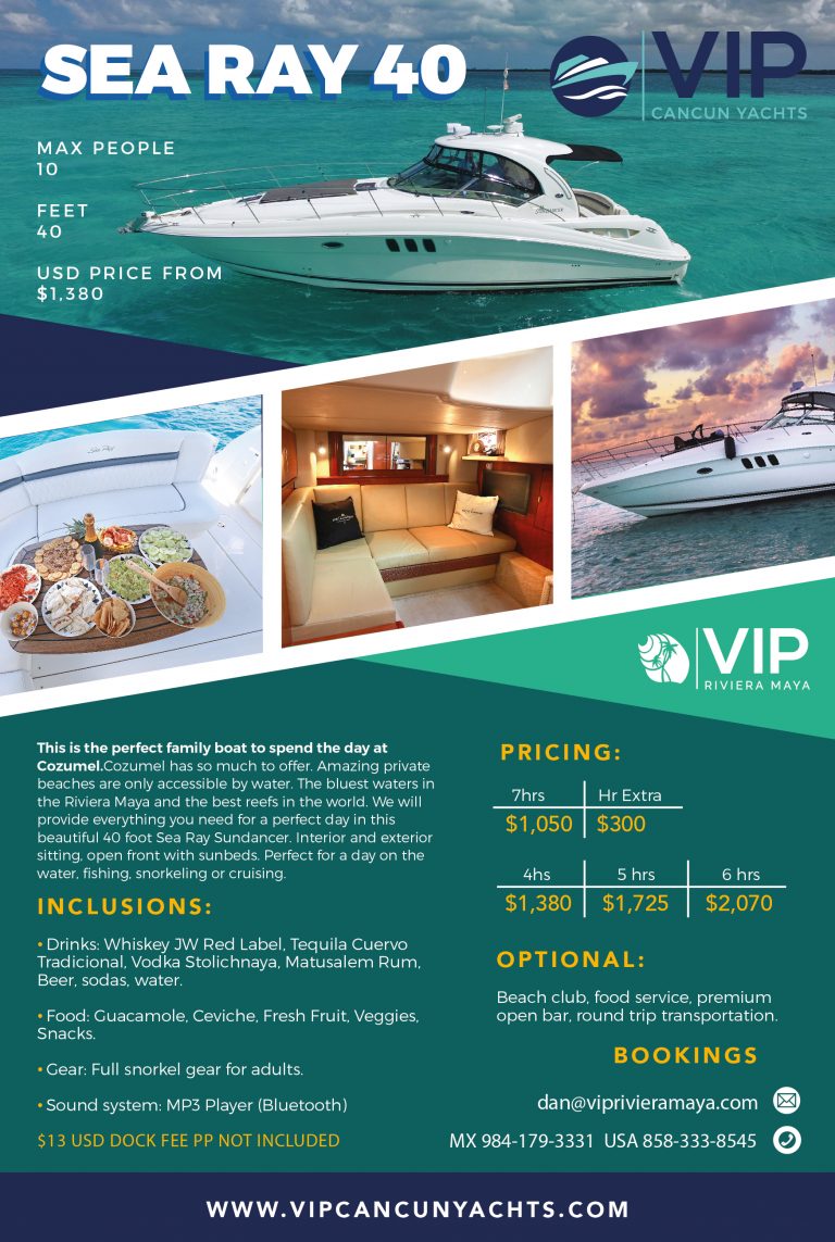 VIP Cancun Yachts operates out of Cancun, Puerto Aventuras, Maroma, and Playa del Carmen and is a sister company of VIP Riviera Maya and VIP Cancun Transportation. VIP Riviera Maya is a travel company that takes vacation tours and excursions to an entirely new level.  We’re safe and reliable, but what we do best is customer service! Plus, we customize your tour to just what your group wants. We know that vacation time is valuable and there’s no time to waste. And our VIP Cancun Transportation offers safe, reliable, and comfortable airport transfers and other excursions with top-notch customer service, fully insured vehicles and the friendliest bi-lingual drivers with added service options when the need to customize your transportation is necessary.